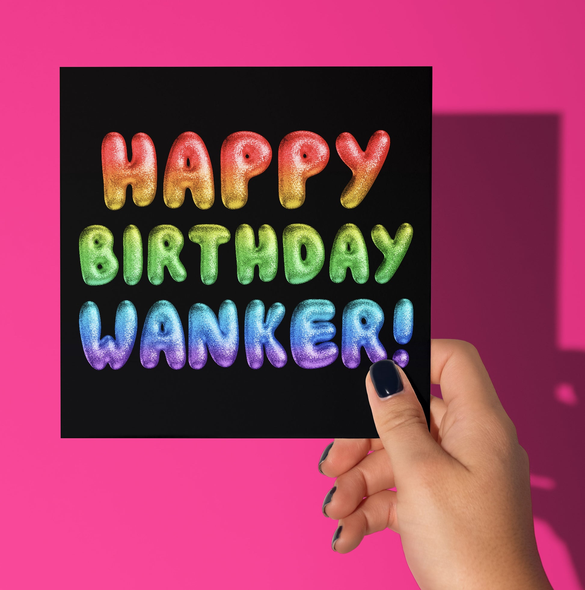 Happy Birthday Wanker! Rainbow Font Card (Pack of 6)