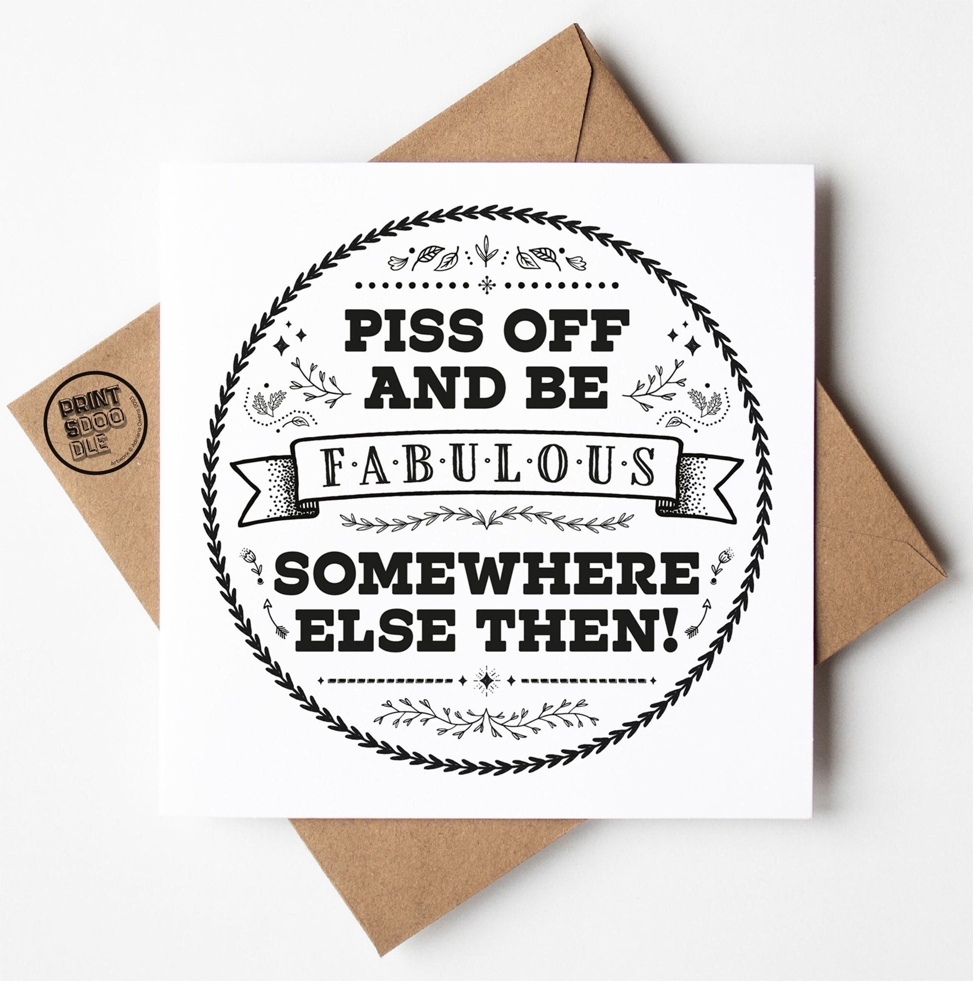 Piss Off and Be Fabulous Somewhere Else Then! Scandi Inspired Minimalist Leaving Card.